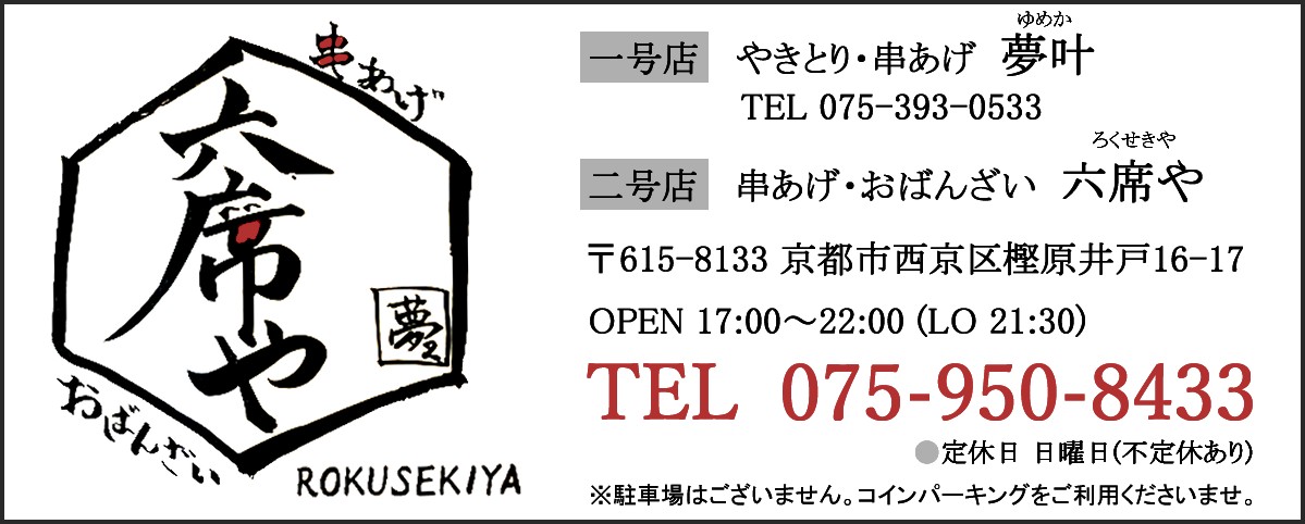 | 名称 | 串揚げ、おばんざい 六席や |